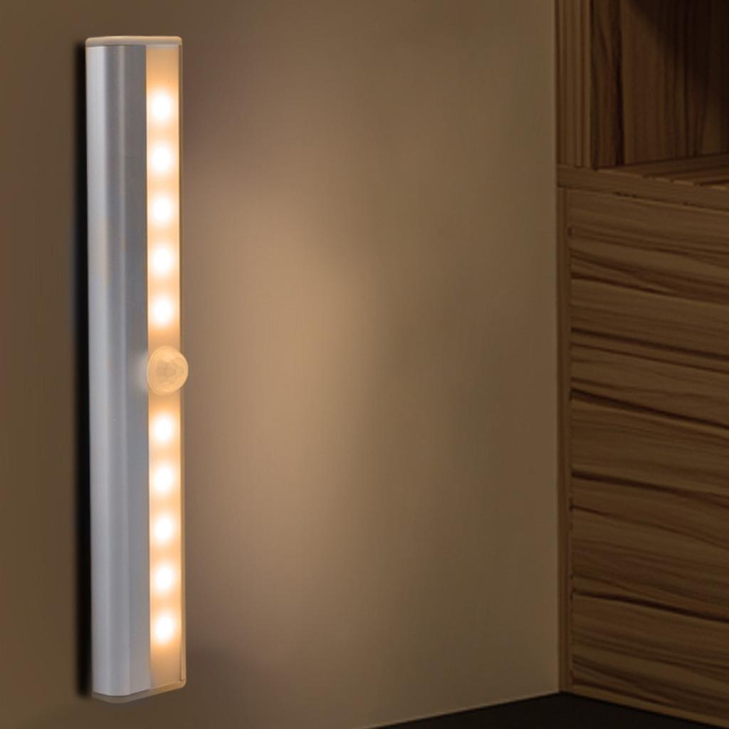 Светодиодные светильники с датчиком движения 10 светодиодов, работающие от батареек, свет с датчиком движения, магнитный ночник-планка для кухонного шкафа, кладовки