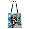 Рождественская Холщовая Сумка-Шоппер с Принтом Собаки Харадзюку Женская Многоразовая Сумка через Плечо 2022 Повседневная Вместительная Складная Сумка KTY