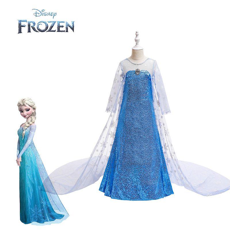 Детский костюм для косплея Эльзы из мультфильма «Холодное сердце», платье принцессы с длинным плащом из пайеток