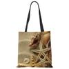 Женская сумка через плечо Голубой океан Морская звезда Пляжные следы Хозяйственная сумка Льняная ткань Красивая Повседневная Практичная Сумка KTY