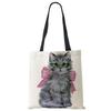 Персонализируйте Милый Акварельный Принт с Кошкой Женские Дизайнерские Холщовые Сумки Тканевые Эко Многоразовые Сумки-Шоперы Сумки на Плечо Школьная Сумка для Книг KTY