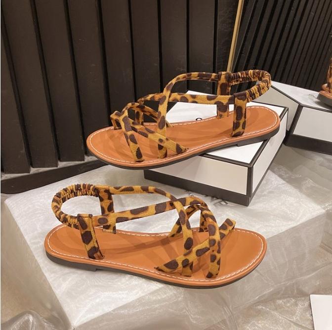 Сандалии с леопардовым принтом на плоской подошве, женская уютная повседневная обувь, новые прогулочные тапочки, лето 2024, уличные пляжные шлепанцы, шлепанцы