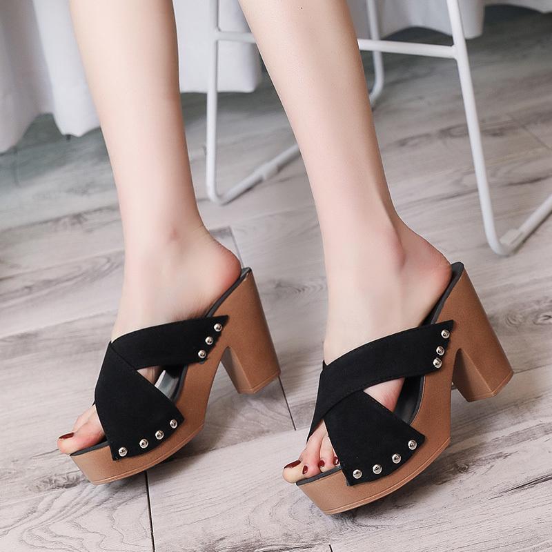 Летние женские босоножки на высоком квадратном каблуке на платформе из флока, повседневные туфли-лодочки с заклепками, с открытым носком, женские элегантные туфли Zapatos De Mujer — купить товар онлайн с бесплатной доставкой по всему миру!