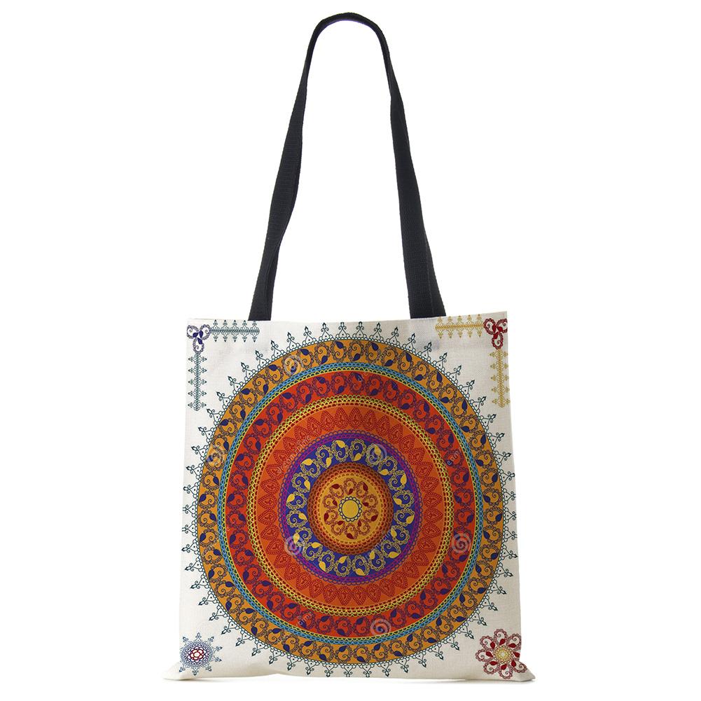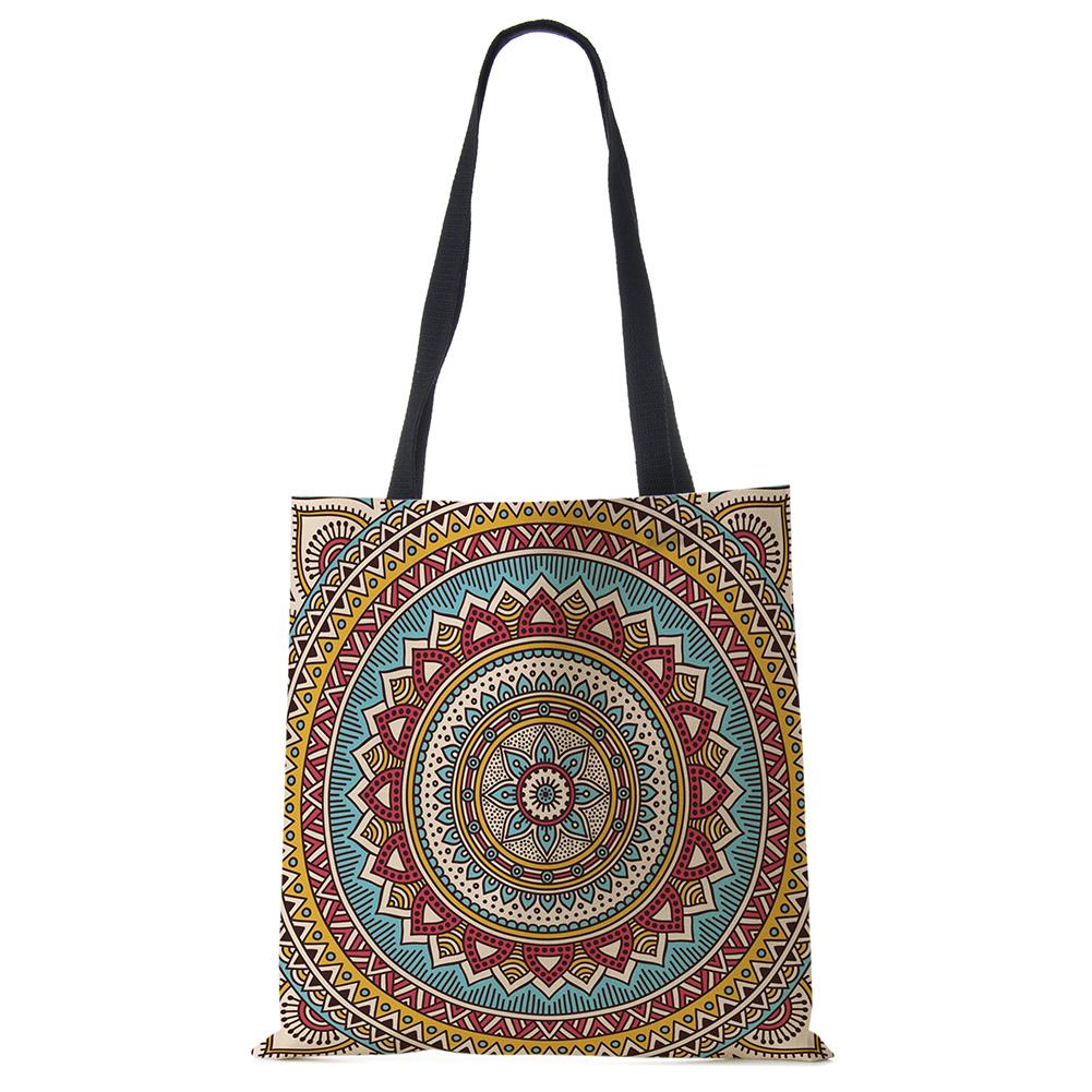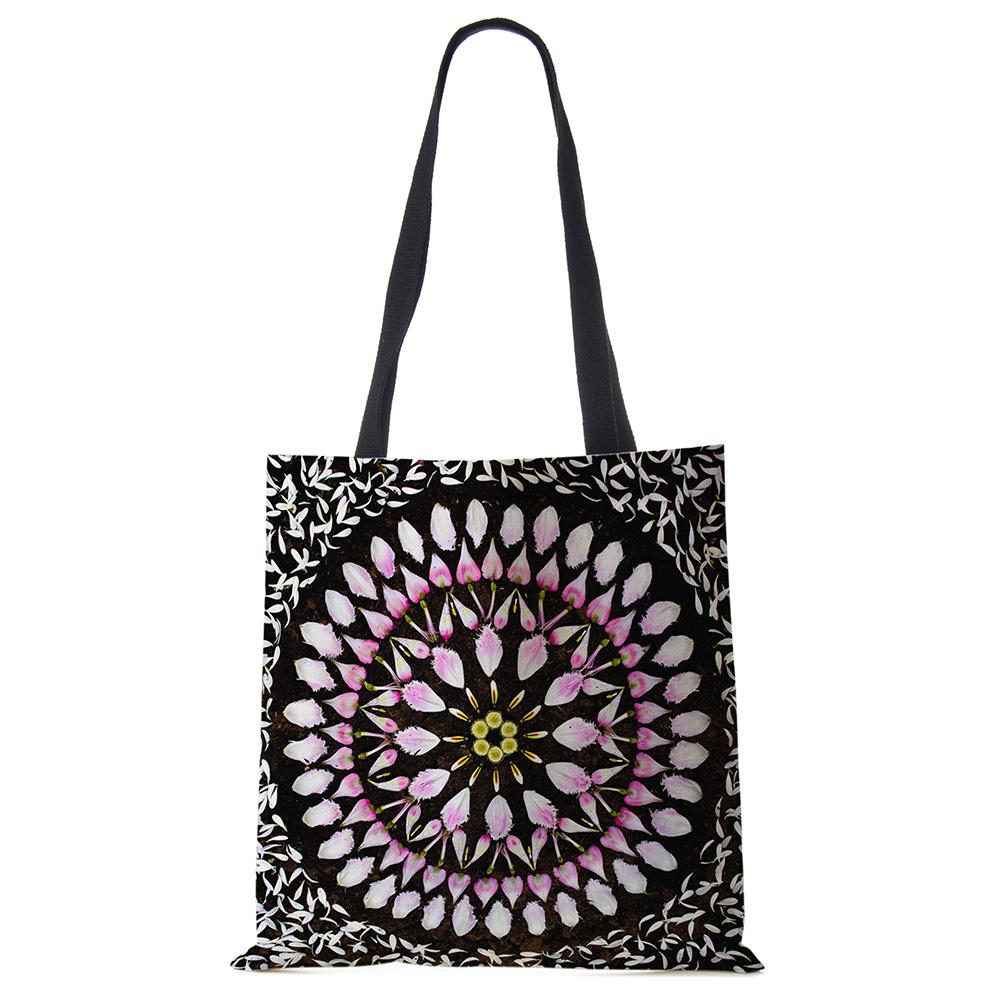 Сумки-тоут с мандалой и цветами для женщин, экологичная льняная многоразовая хозяйственная сумка, сумки с цветочным принтом для леди, для путешествий, пляжа KTY