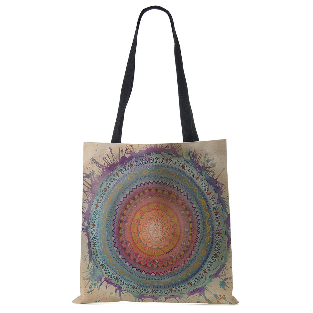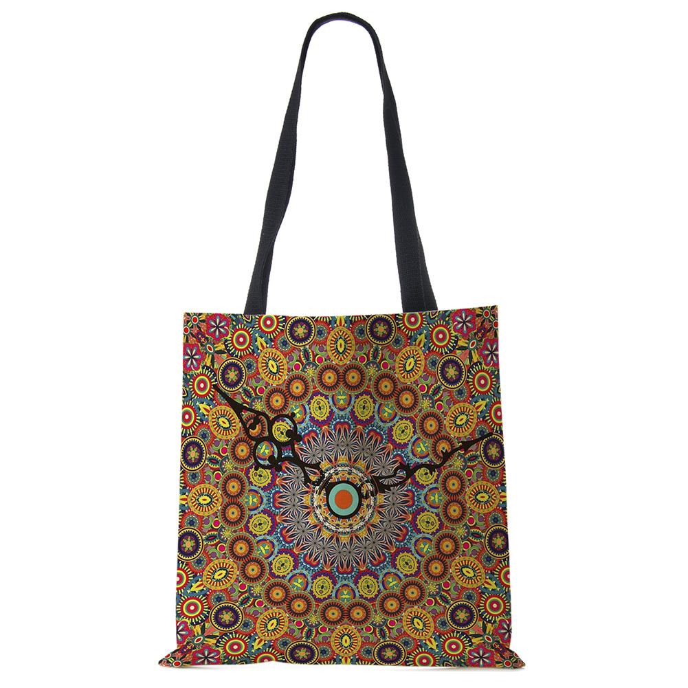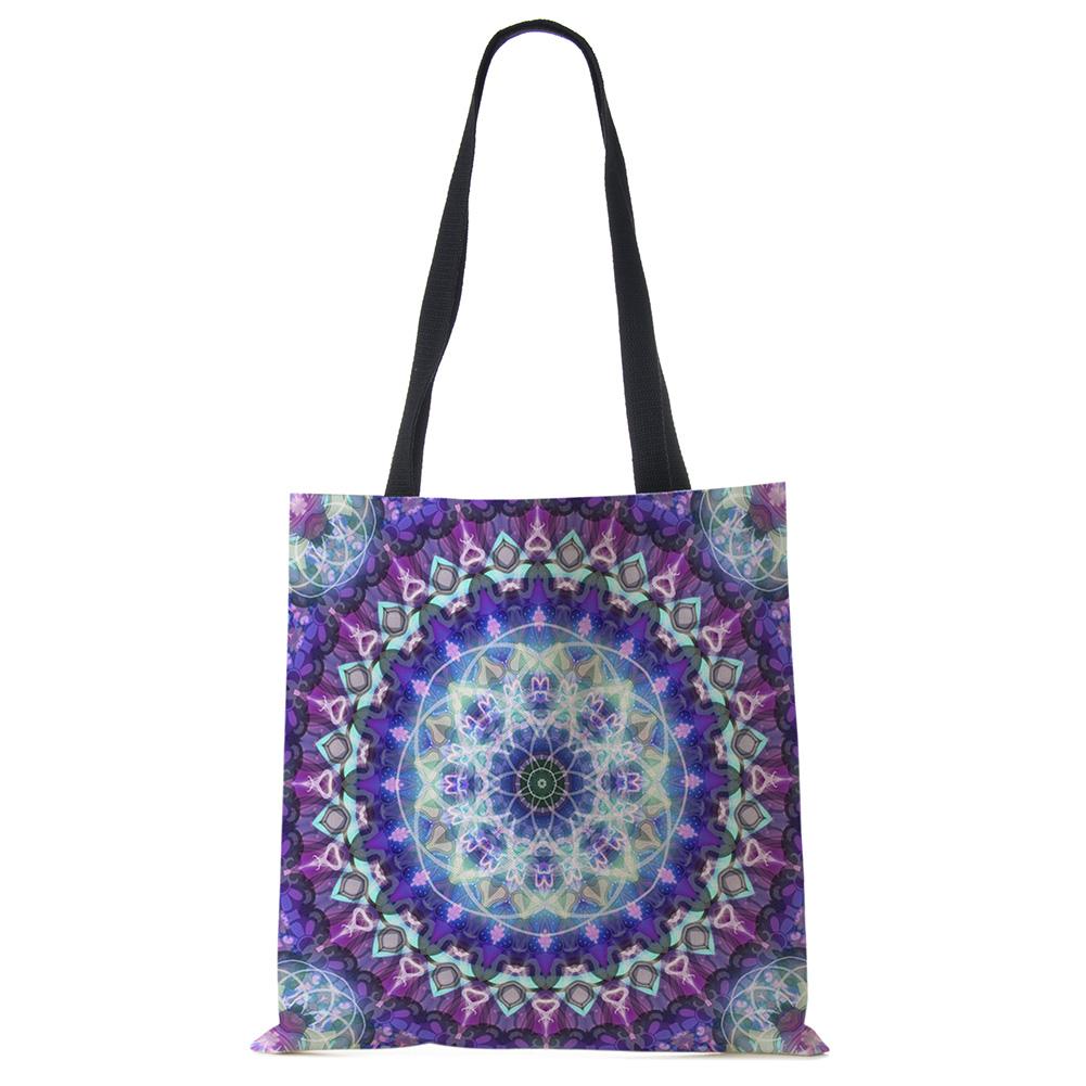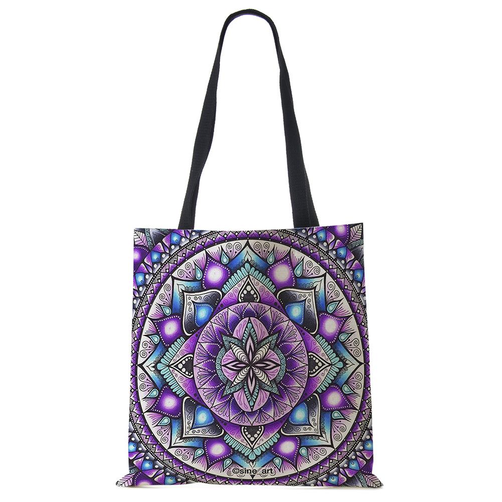 Сумки-тоут с мандалой и цветами для женщин, экологичная льняная многоразовая хозяйственная сумка, сумки с цветочным принтом для леди, для путешествий, пляжа KTY