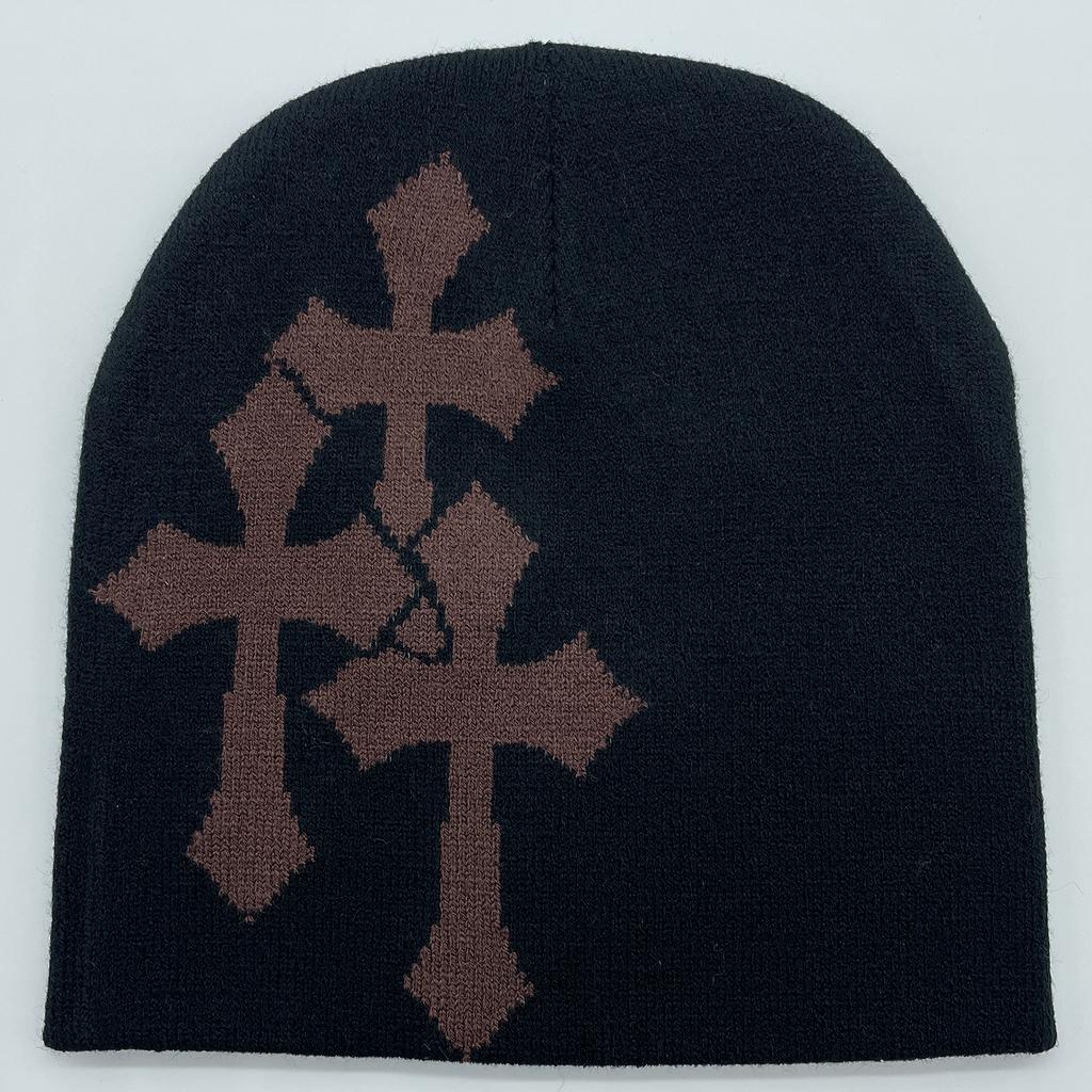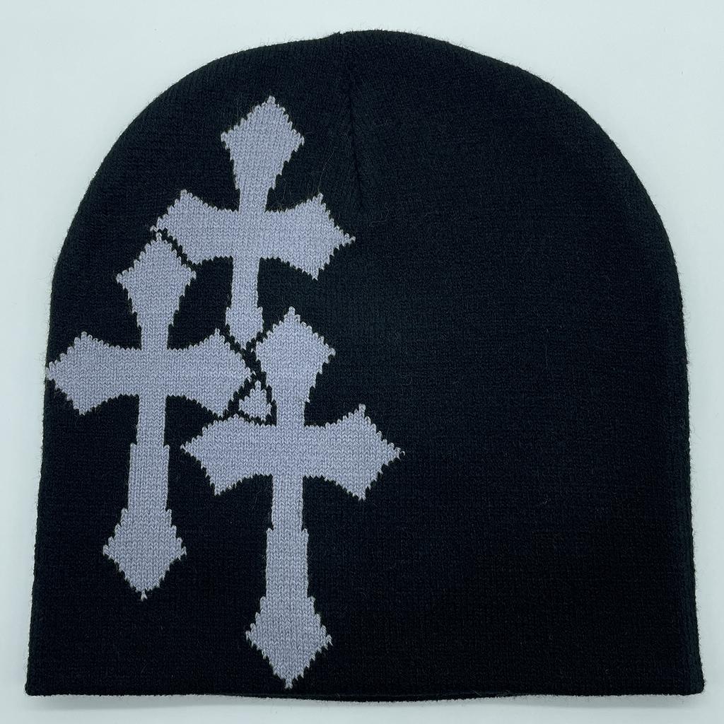 Шапка вязаная жаккардовая Y2K с распятием, европейская и американская популярность, хип-хоп шапка, уличная трендовая модная личность, взрослая шапка