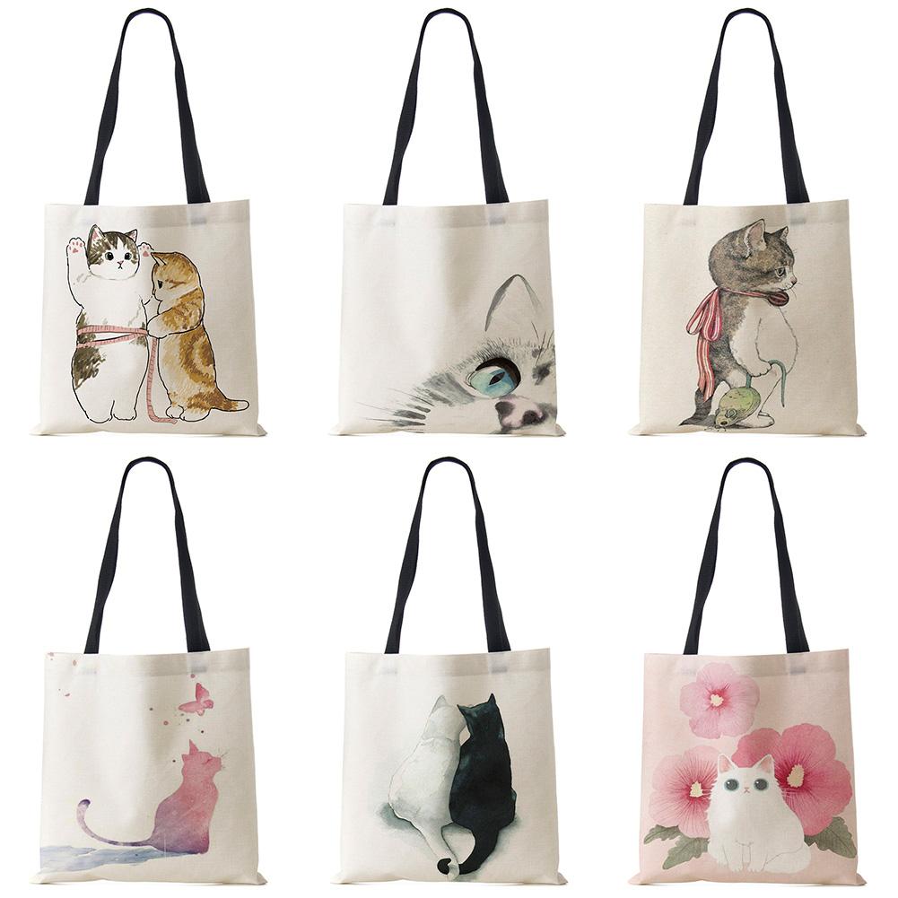 Акварельные сумки-тоут ручной росписи, цветочная милая кошка, принт, наплечная сумка для женщин, леди, офисная сумка, повседневные сумки для покупок, KTY — купить товар онлайн с бесплатной доставкой по всему миру!