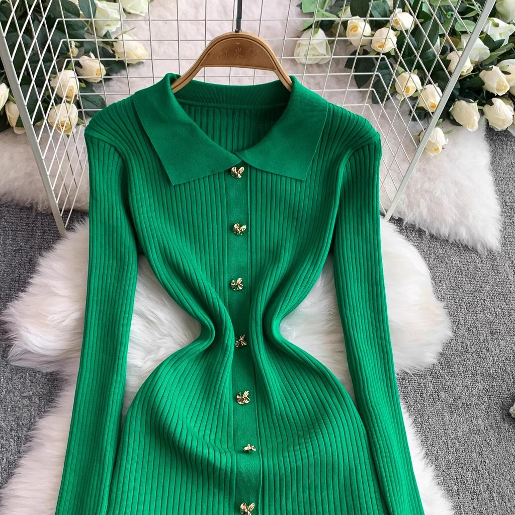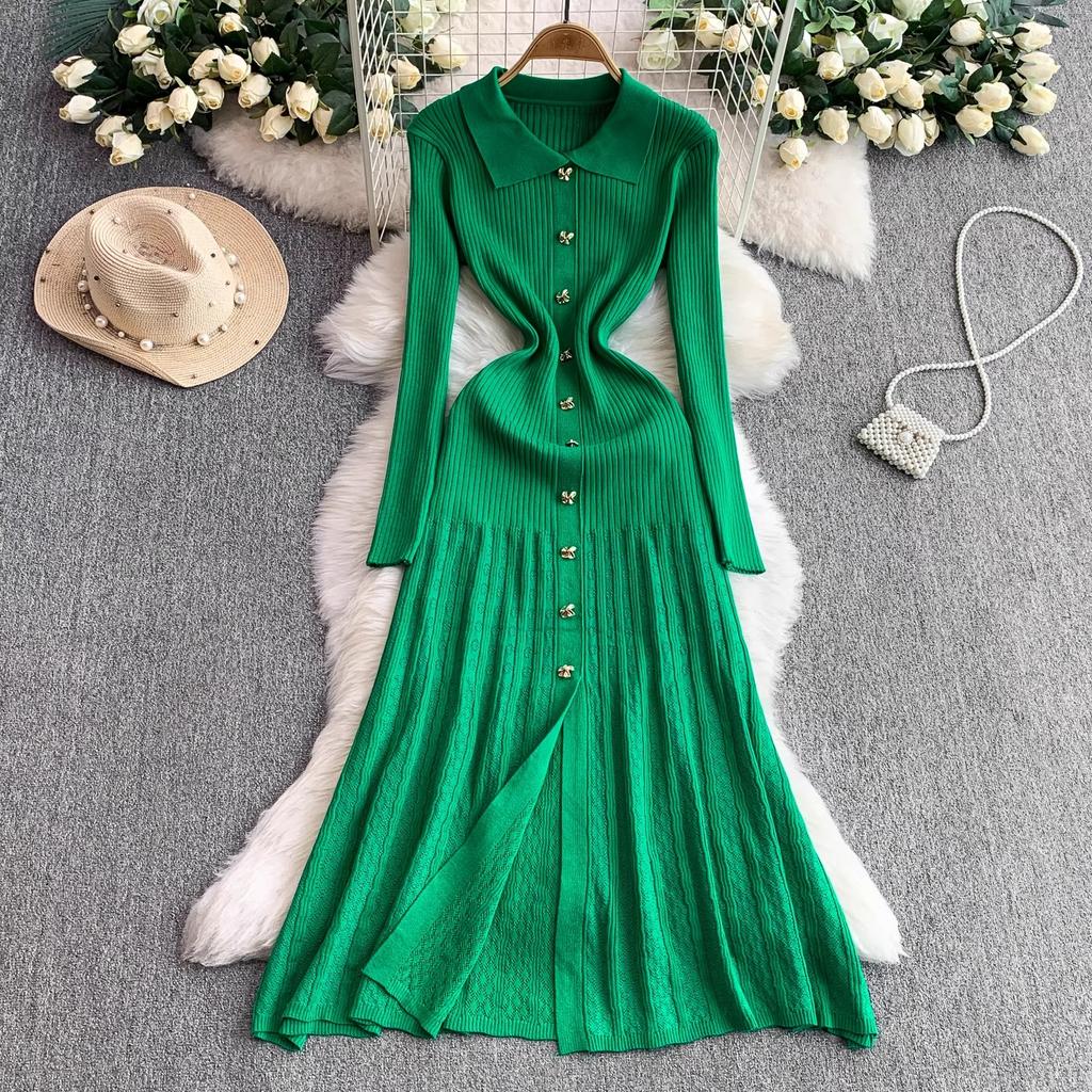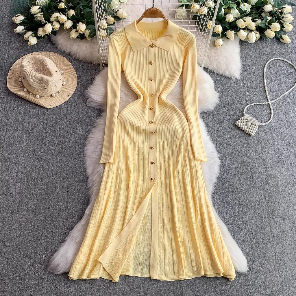 Женское платье Осень Зима Винтажное с отложным воротником Длинное платье-свитер Элегантные платья для офисной леди Шикарные платья для вечеринки Vestidos