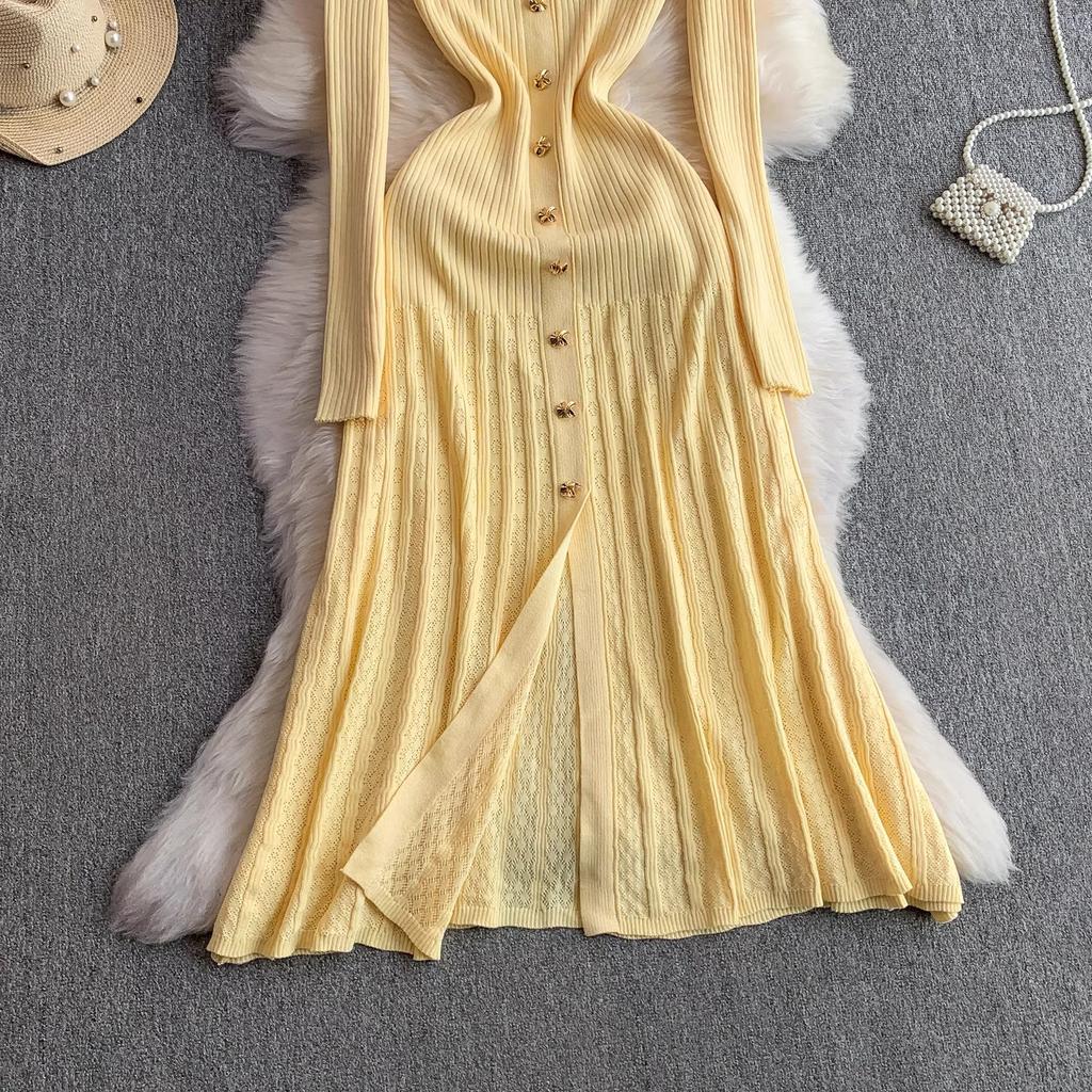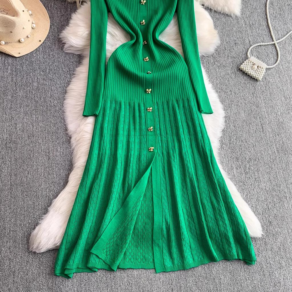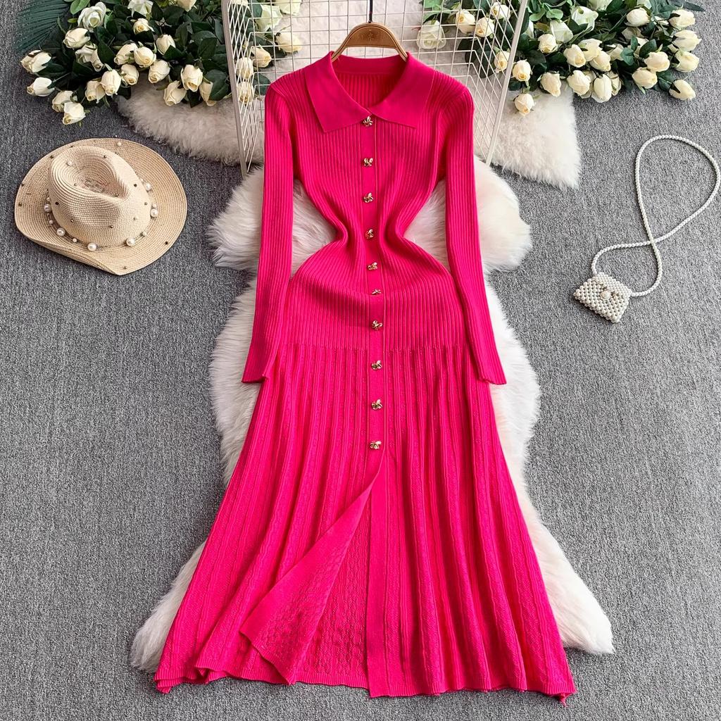 Женское платье Осень Зима Винтажное с отложным воротником Длинное платье-свитер Элегантные платья для офисной леди Шикарные платья для вечеринки Vestidos