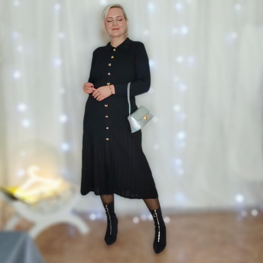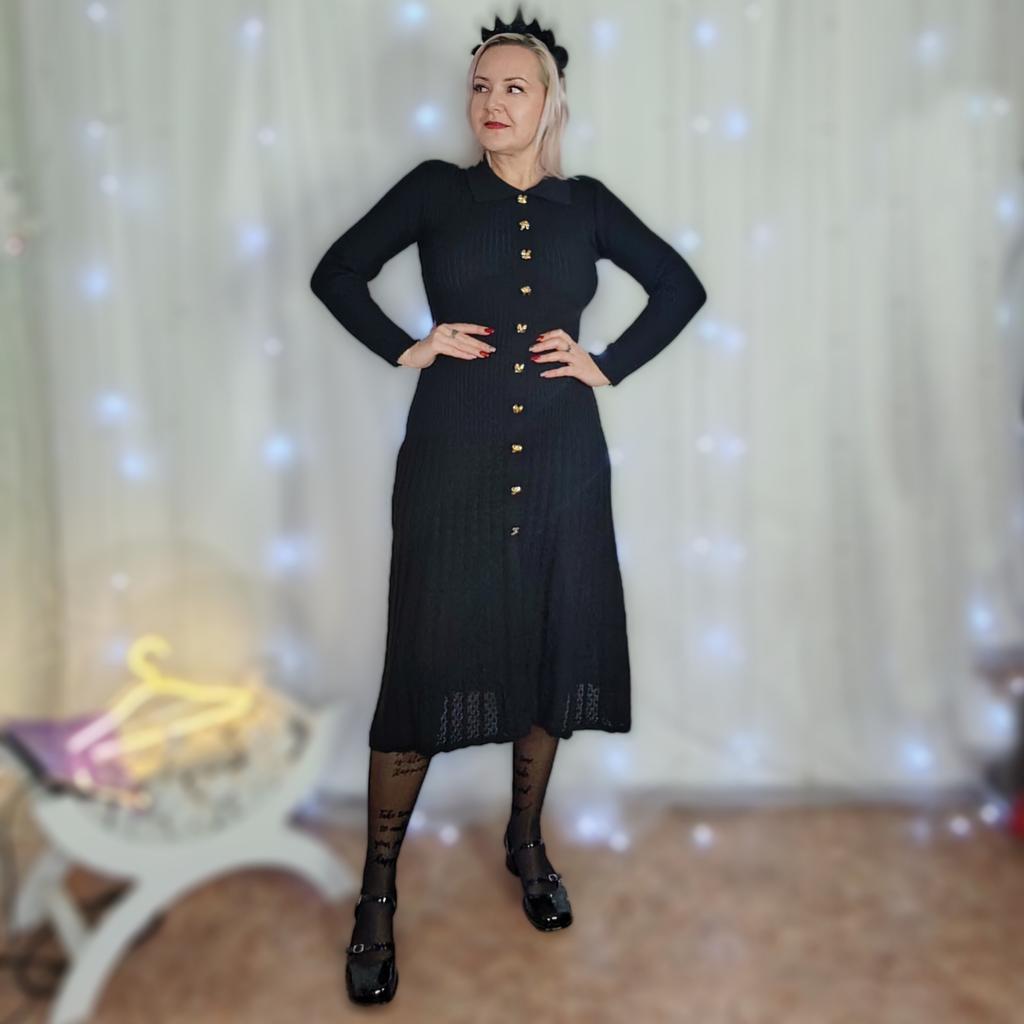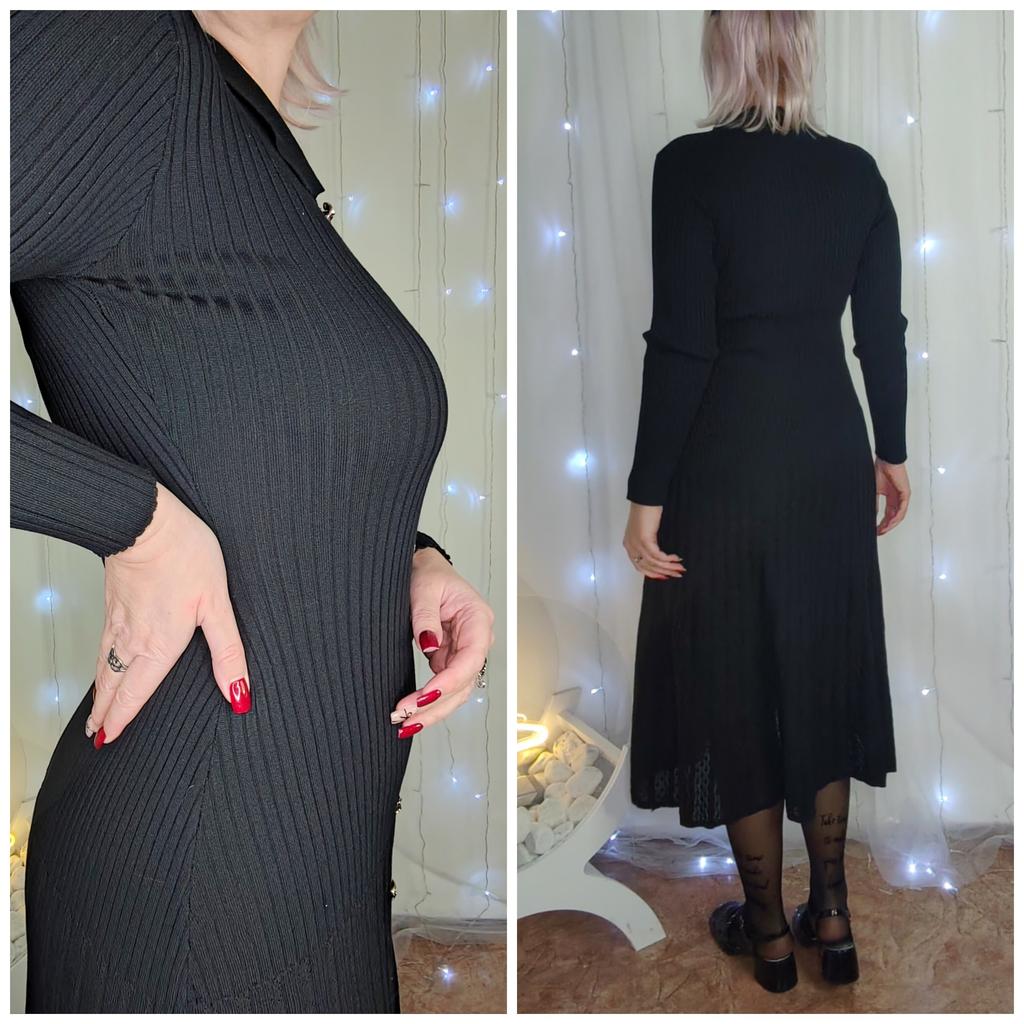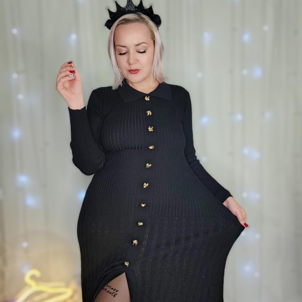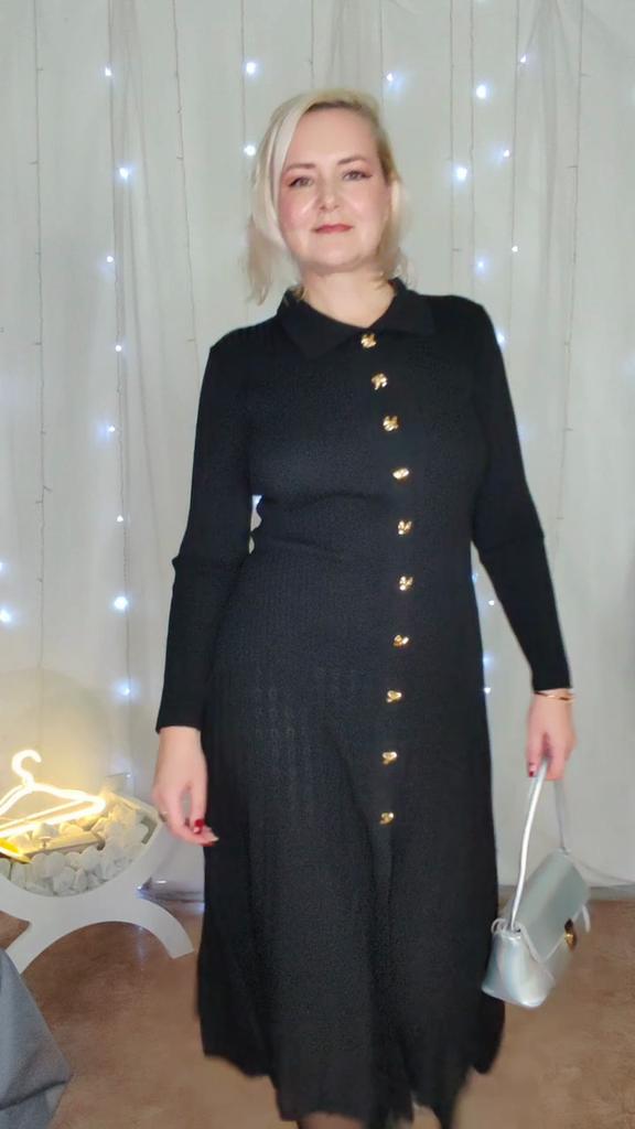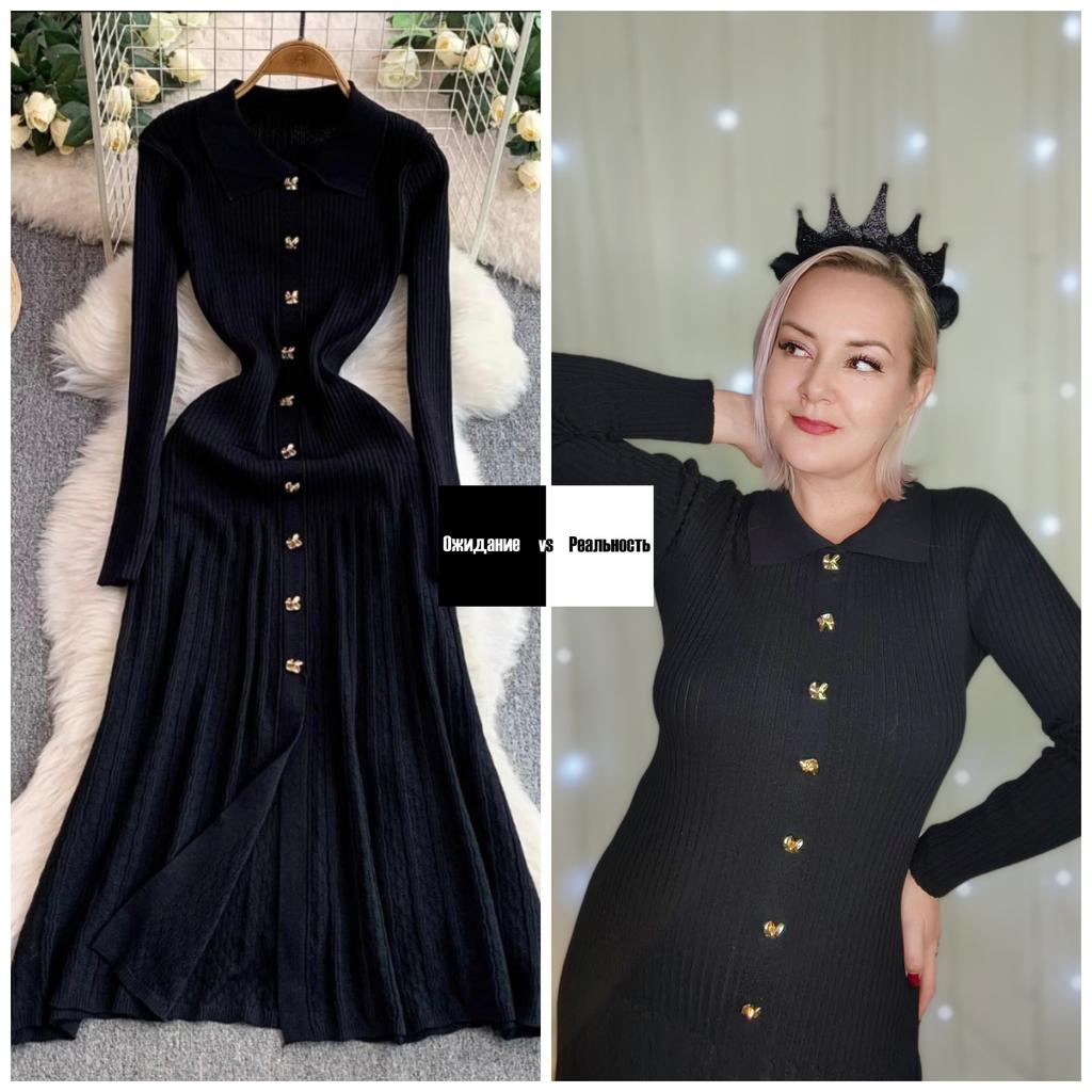 Трикотажное платье в лаконичном дизайне ☺️ Это уже второе моё платье в такой модели. Оно универсальное, мягкое, комфортное и отлично стройнит — именно поэтому снова оказалось в моей корзине, но в другом цвете. Размер: На мне — единый размер. Мои параметры: рост 172 см, 98/76/106 см. Замеры платья: Длина: 122 см Плечо: 41 см Длина рукава: 62 см ОГ: от 76 до 122 см ОТ: от 58 до 108 см ОБ: от 108 до 164 см Ткань: Мягкий трикотаж, хорошо тянется. В составе чувствуется вискоза. Назвать его очень тёплым нельзя — это скорее вариант на осень и весну. Дизайн: У платья красивые пуговицы под золотую фольгу. Пуговицы — декоративные (не застёгиваются). Верхняя часть платья облегает фигуру, а ниже оно расклешёно в А-силуэт. Низ оформлен рельефным кружевным узором — это плетение из самих нитей. Сезон: Осень / весна Цвет: Чёрный Резюме: Отличное платье. Одно из немногих в моей коллекции, которое действительно стройнит. Рекомендую! 👍 Была рада помочь с выбором! M_K #трикотажноеплатье #универсальноеплатье #Асилуэт #осеньвесна #стройнящийсилуэт