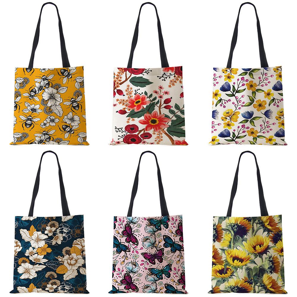 Сумка-тоут с цветочным принтом на заказ для женщин, многоразовые сумки через плечо, дорожные школьные сумки 40x40 см KTY
