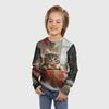Детская футболка с мультяшным котом, для мальчиков, милая, с длинным рукавом, мягкий удобный топ