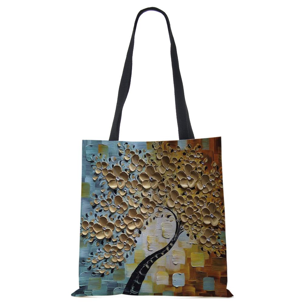 Женская холщовая сумка-тоут с принтом пейзажа, многоразовая сумка-шоппер, наплечная сумка 2022, экологичная, харадзюку, повседневная, большой вместимости, дорожная сумка-тоут KTY