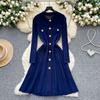 Осень Зима Платья А-силуэта с высокой талией и вязаной юбкой-зонтиком 2025 Новые пуговицы О-образный вырез Длинный рукав Свободное платье-свитер Женское