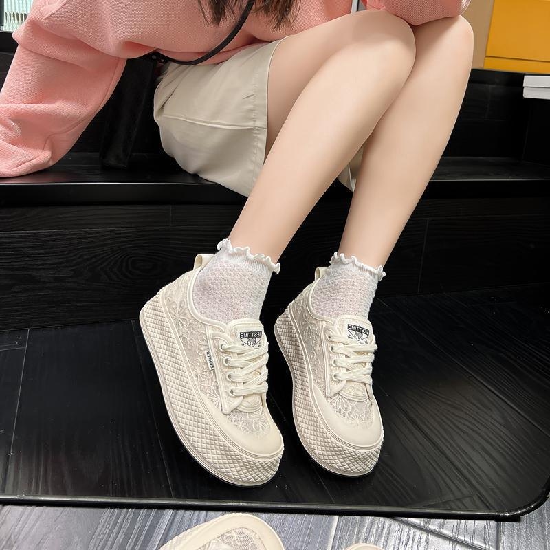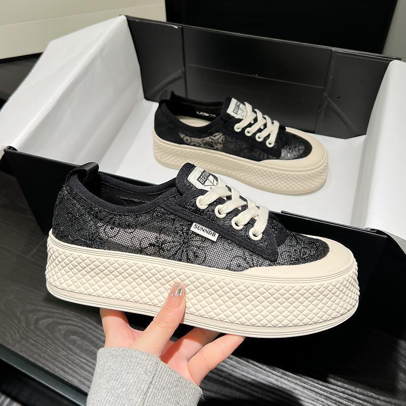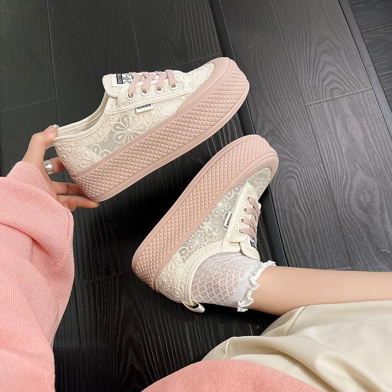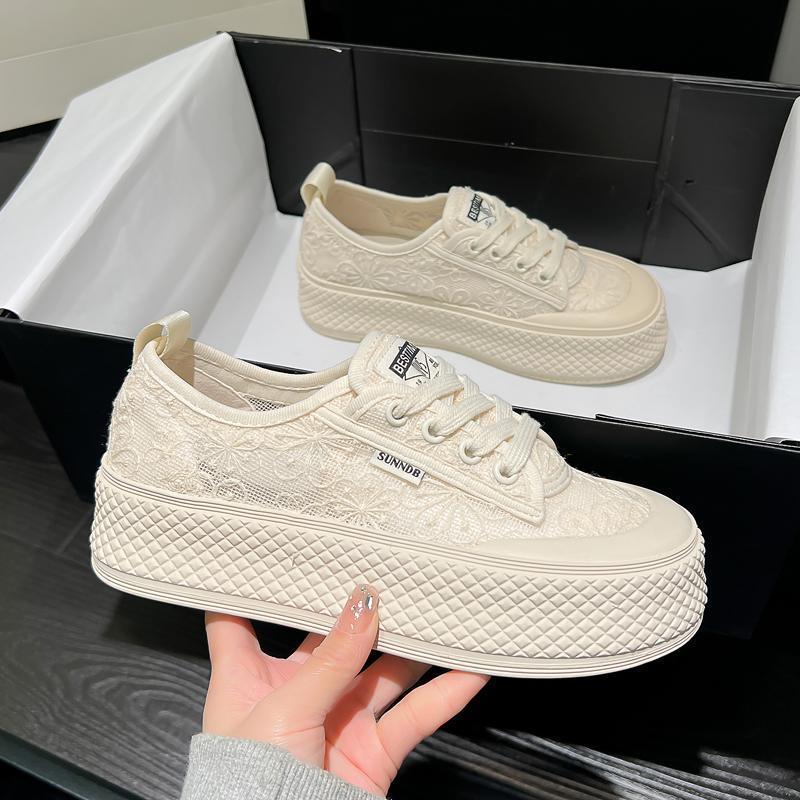 Холщовые туфли женские лето 2025 новая женская обувь платформа универсальные сетчатые дышащие сетчатые туфли тонкие туфли на платформе с рисунком печенья