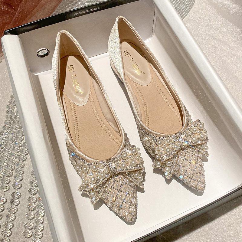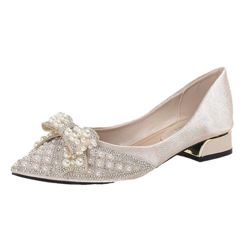 Французский острый носок, мелкий вырез, одинарные туфли, женские, толстый каблук, нескользящие, весна 2025, новая мягкая подошва, низкий каблук, женские туфли, туфли с кристаллами для подружки невесты