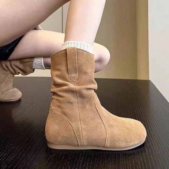 Женская обувь нишевый дизайн ретро ботильоны на наборном каблуке 2025 новые круглый носок плоская подошва маленькие короткие ботинки популярный западный ковбой лошадь