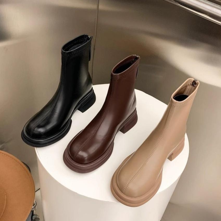 Женские ботинки Мартин коричневые в британском стиле на толстой подошве с высоким голенищем, увеличивающие рост, ретро, жареные уличные, абсолютный ребенок, водонепроницаемые ботильоны Челси
