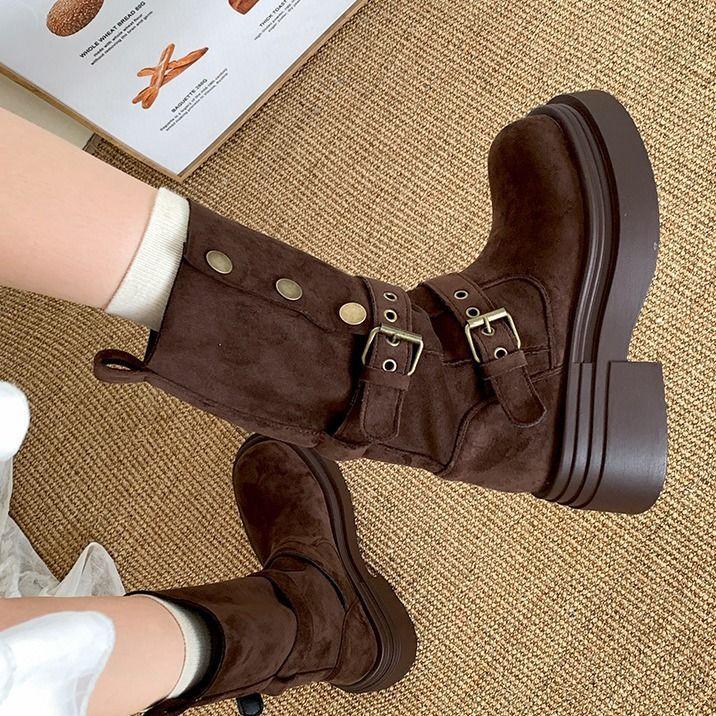 Martin boots women's 2025 new summer brown retro British style thick heel thick sole thin height-increasing short boots