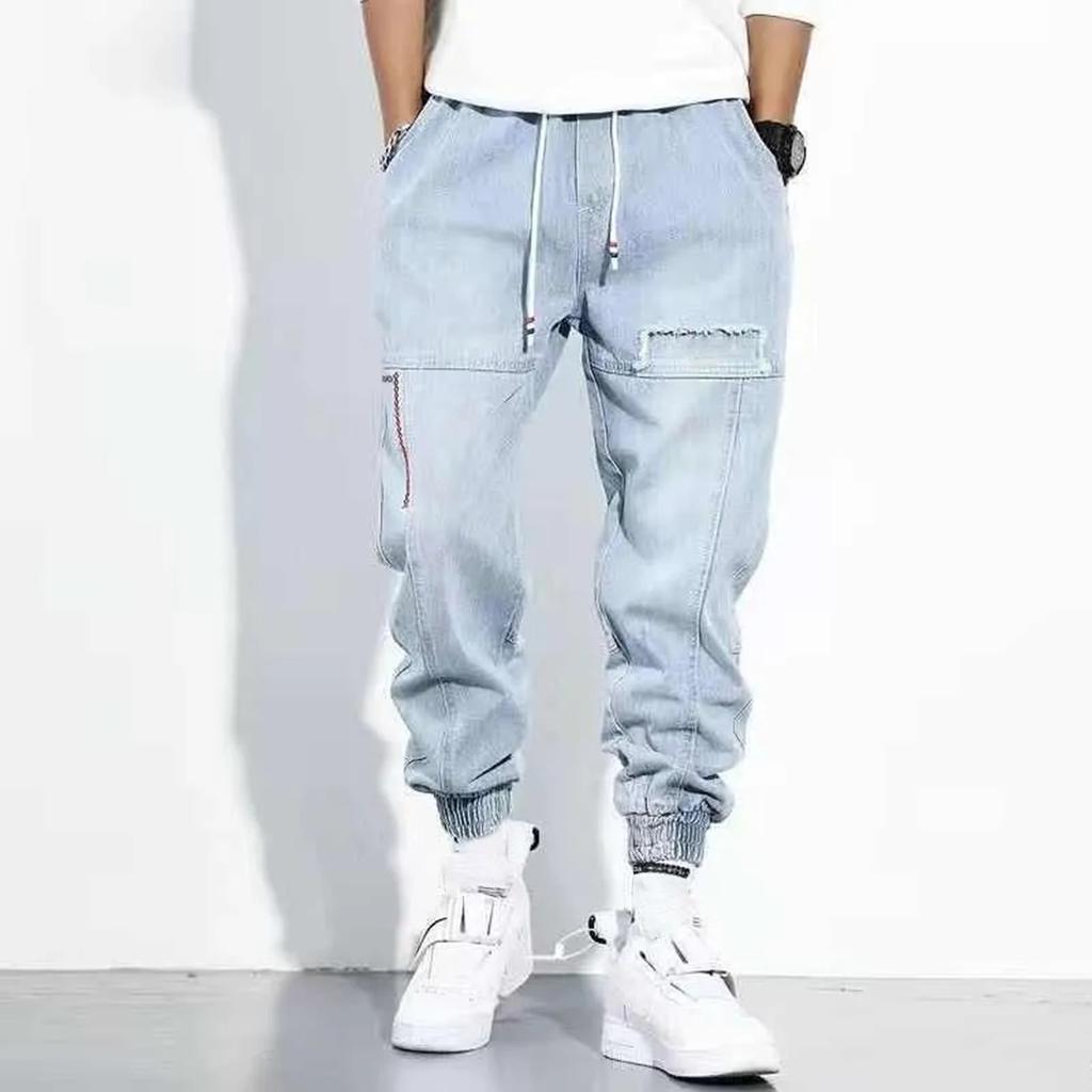 Европейские и американские мужские джинсы с принтом и эластичными нашивками, маленькие джинсы