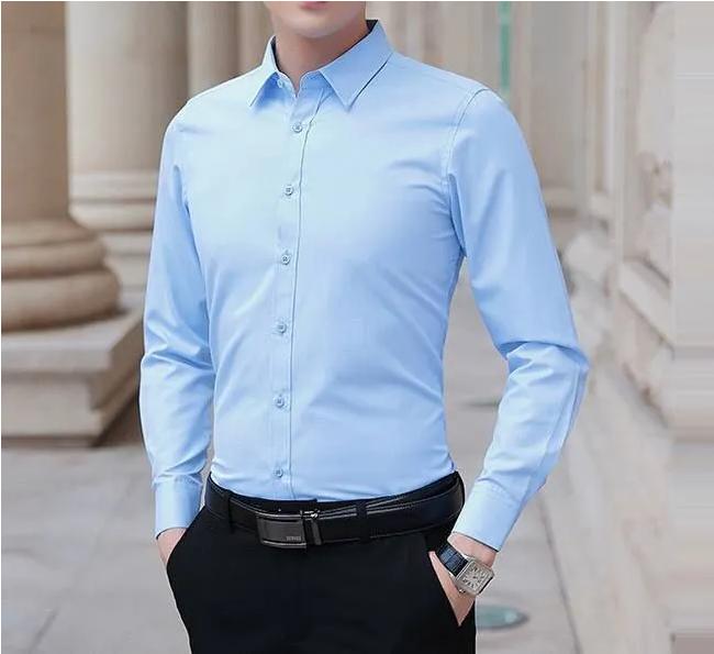 Мужская приталенная рубашка с длинным рукавом, весенняя, деловая, универсальная