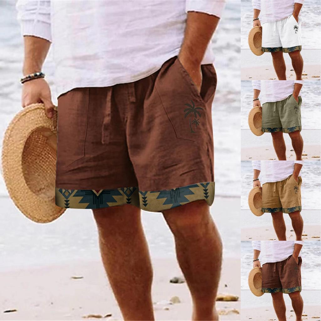 Мужские хлопковые и льняные однотонные спортивные штаны со шнуровкой, мужские шорты, повседневные брюки