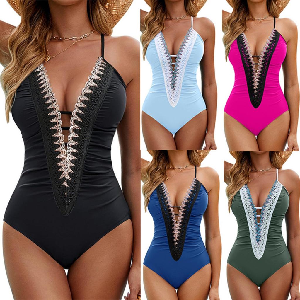 Женский слитный купальник с глубоким V-образным вырезом, сексуальный купальник на завязках с открытой спиной