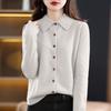 Женский модный повседневный кардиган однотонного цвета свободного кроя с длинными рукавами и отложным воротником