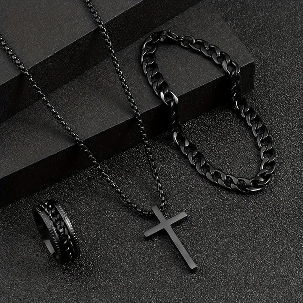3 шт. Панк Крест Ювелирные изделия Цепочка Кольцо Браслет Ожерелье