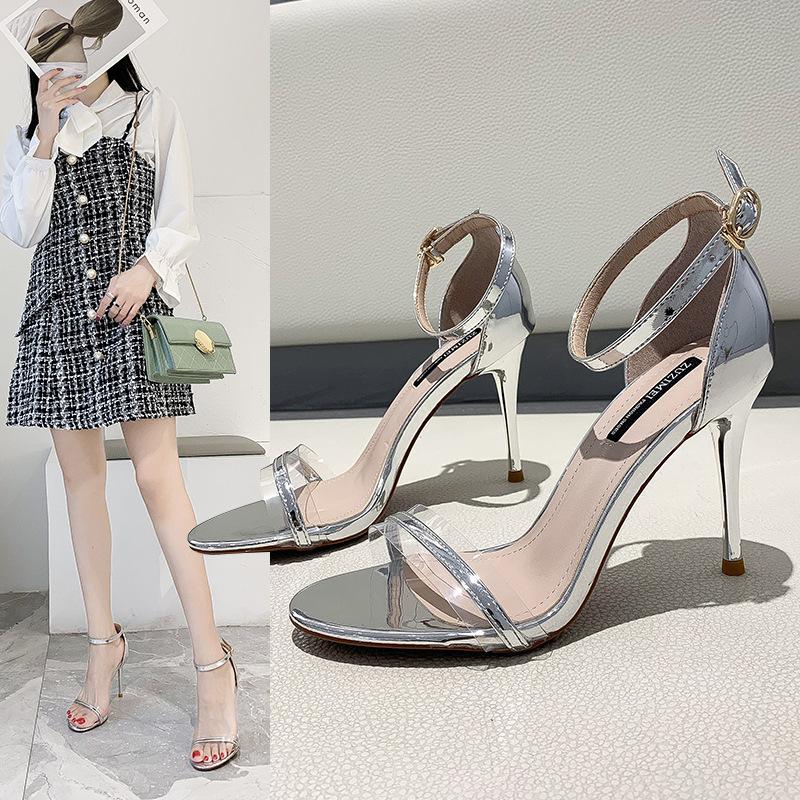 High heels women's 2025 summer new transparent sexy one-word buckle stiletto fashion sandals