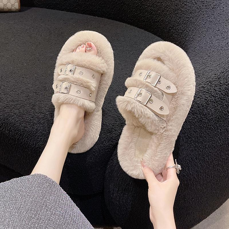 Осень и зима 2025 новые домашние тапочки на толстой подошве, женские тапочки на платформе с пряжкой, шлепанцы