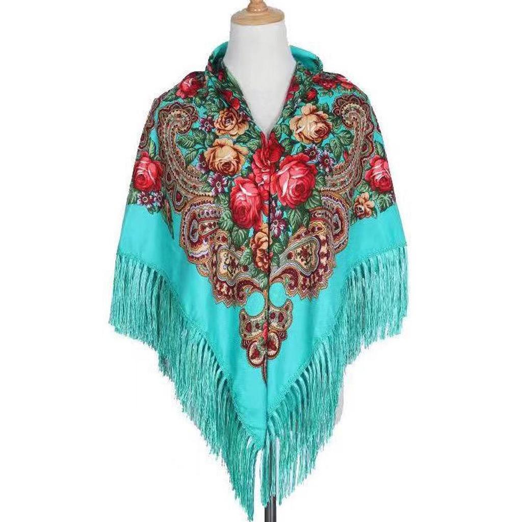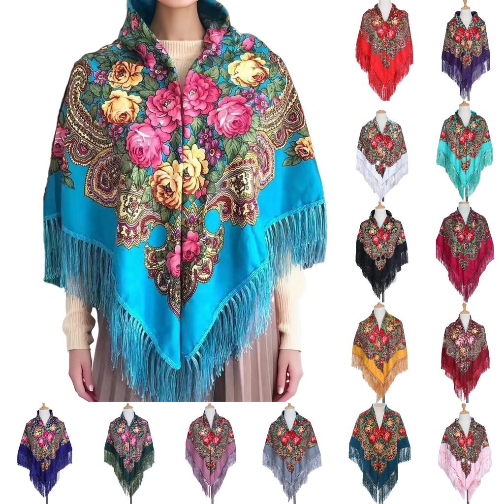 Этнический тюрбан, шарф для головы, женский винтажный дорожный напечатанный платок с кисточками, верхняя одежда, напечатанный квадратный шарф