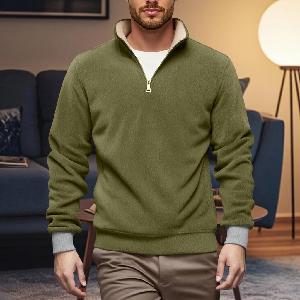 Мужской повседневный однотонный пуловер со стойкой, на одну треть молнии, с длинными рукавами, мужская флисовая утолщенная теплая толстовка