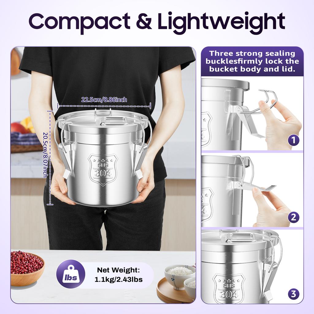 Герметичная емкость из нержавеющей стали 6 л/1,59 галлона Контейнер для зерна Ведро для хранения с крышками для риса, муки, зерна, дома, гостиницы, столовой