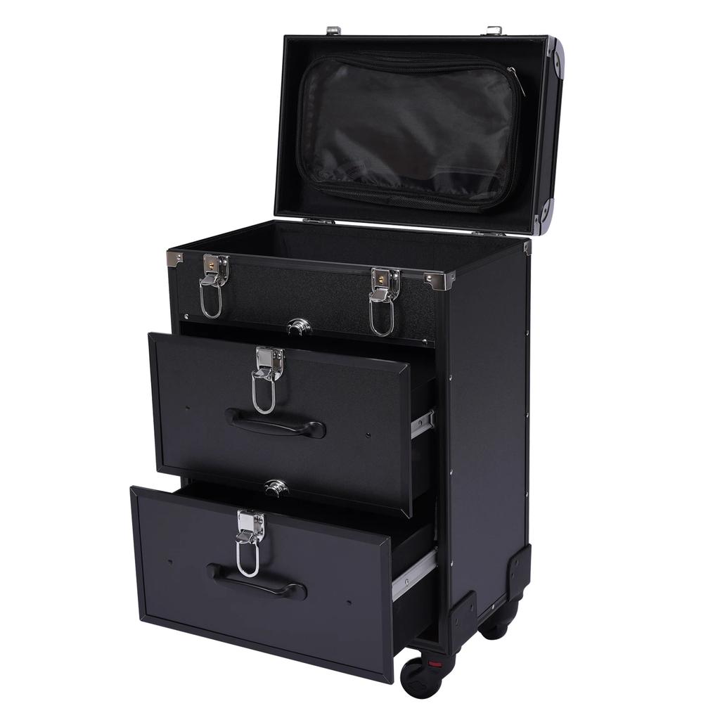 Перекатной кейс для макияжа Черная салонная тележка Косметическая тележка для путешествий Органайзер для хранения нейл-арта для фейс-арта, парикмахера