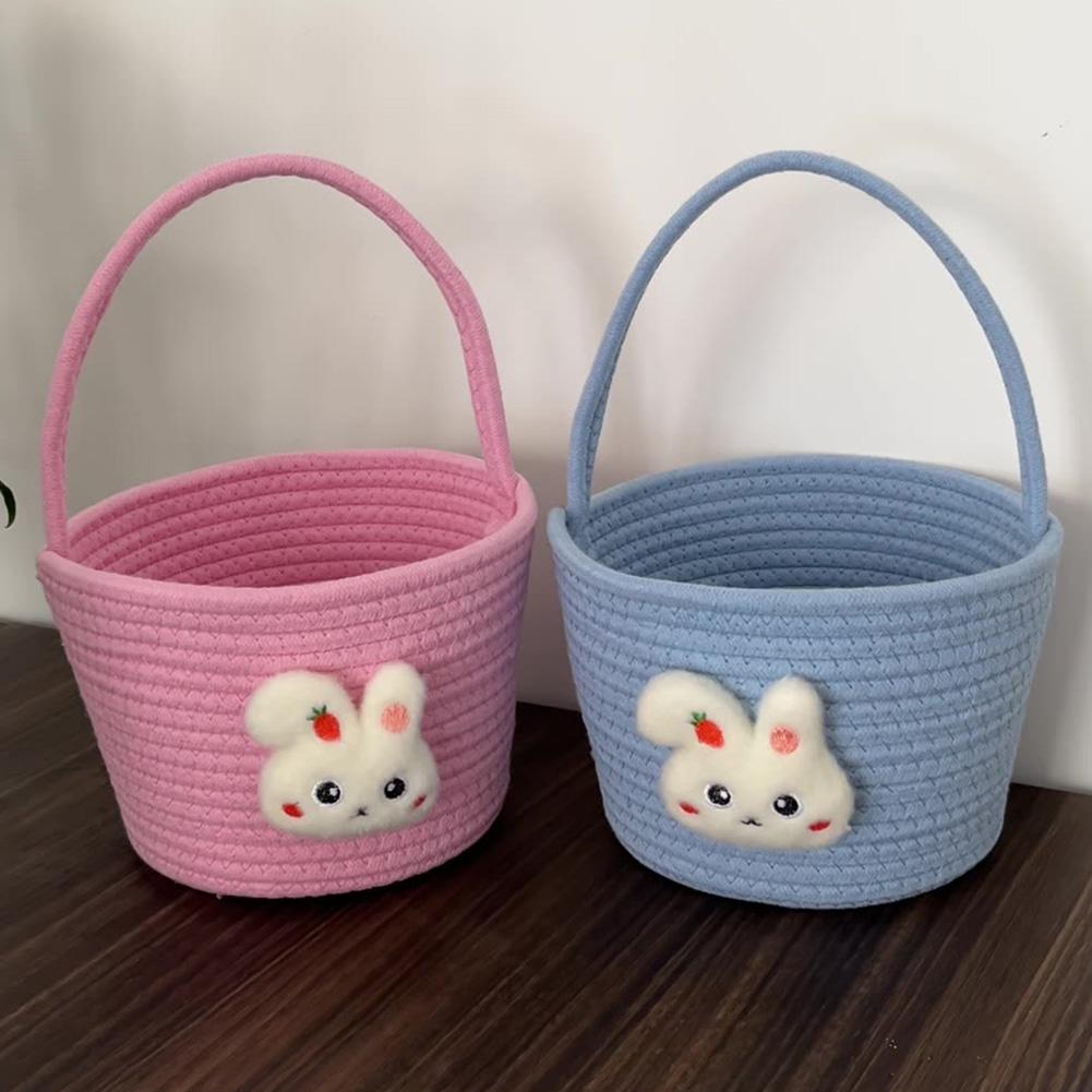 Пасхальная корзина с ручкой, корзина для подарков с кроликом, плетеная вручную корзина из хлопковой нити, пасхальный подарок, корзина для хранения для девочек и мальчиков