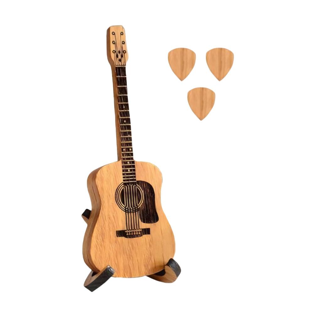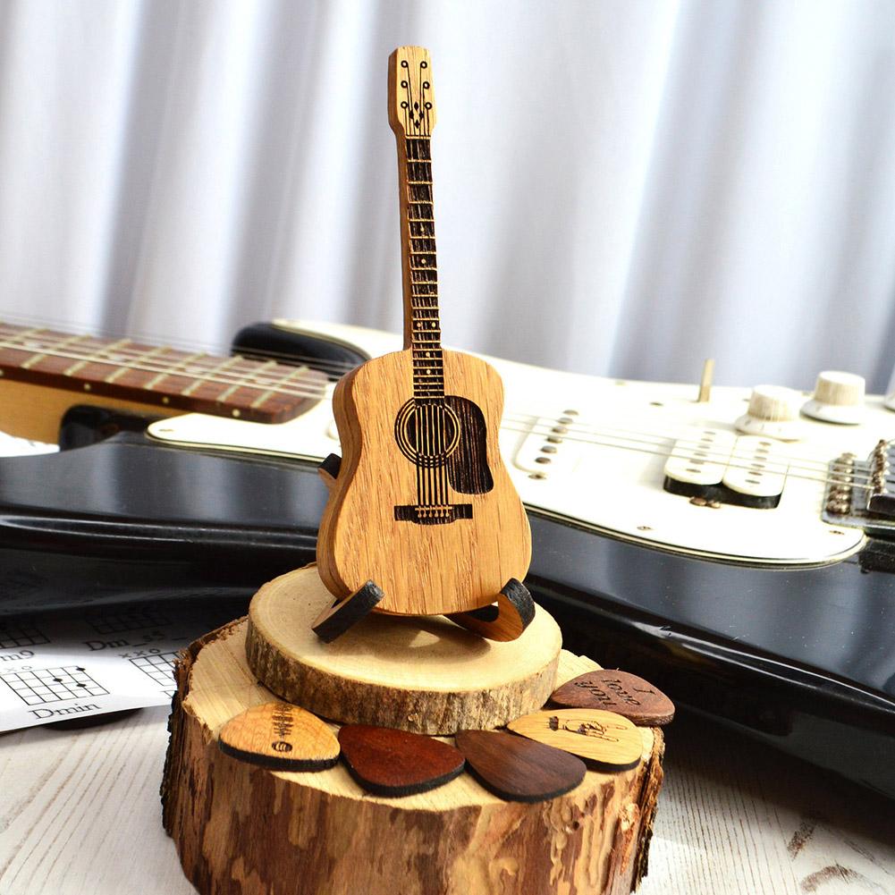 Деревянная коробка для гитарных медиаторов, держатель для медиаторов с подставкой и самими медиаторами, футляр для медиаторов для гитаристов и любителей.