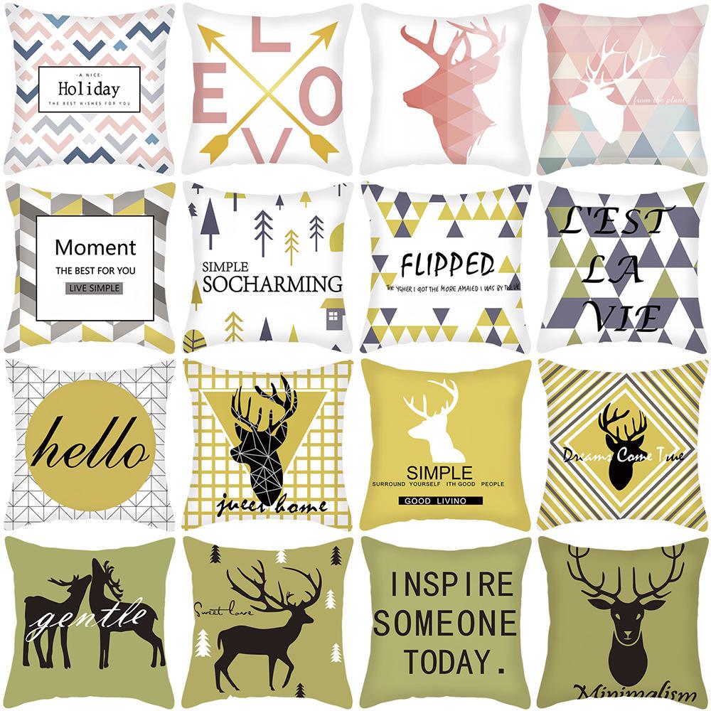 Ins Nordic Style Short Plush Linen Pillowcase Single-sided Printed Cushion Cover Pillowcase