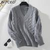 BITCED Женский вязаный свитер Осень/Зима Пуловер свободного кроя Ретро Аранский узор V-образный вырез Длинный рукав Однотонный джемпер
