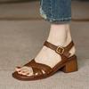 Французские босоножки на среднем каблуке с открытым носком для женской новой летней моды 2025 года, с перекрестными ремешками, на устойчивом каблуке, противоскользящие женские туфли