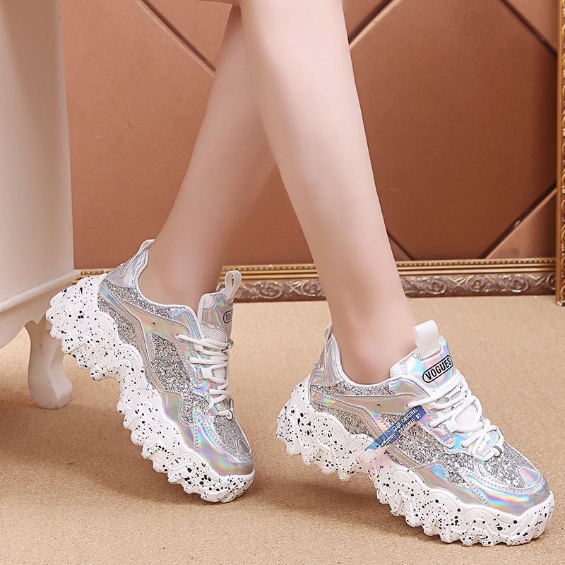 Новые модные и простые кроссовки на толстой подошве, увеличивающие рост, с пайетками в корейском стиле для весны и осени 2025 года