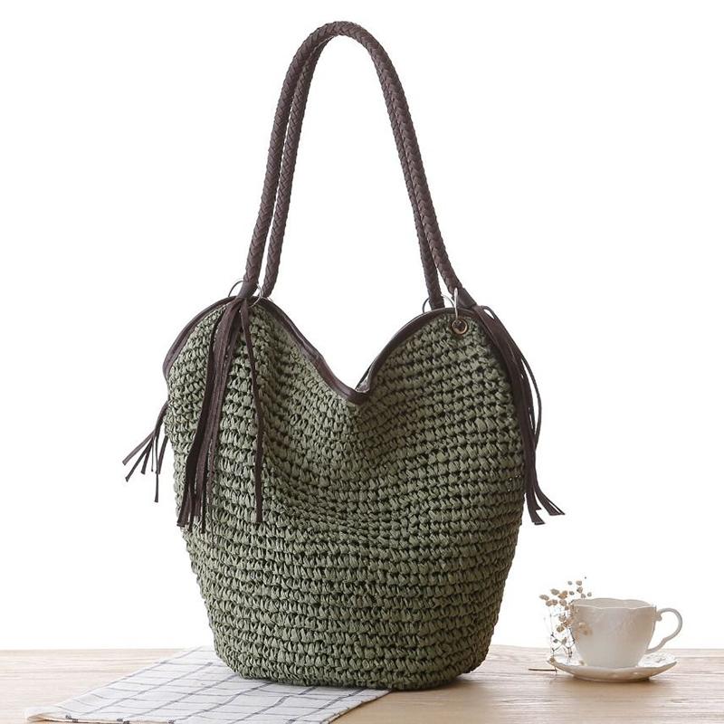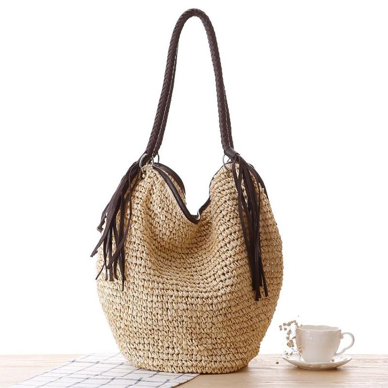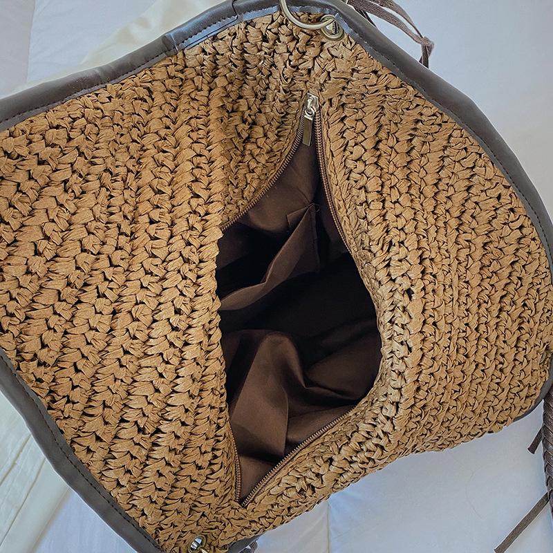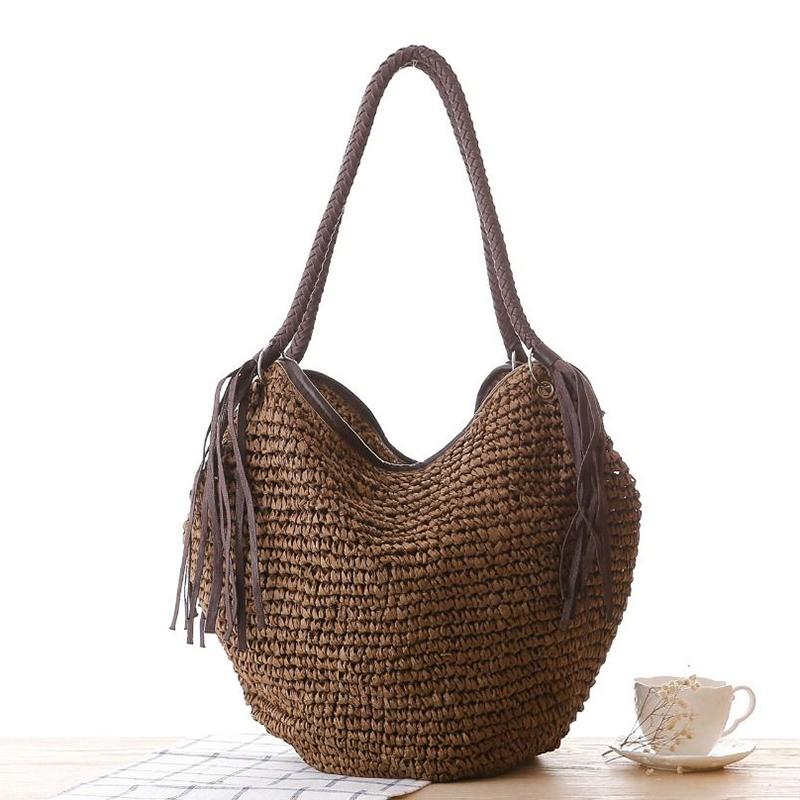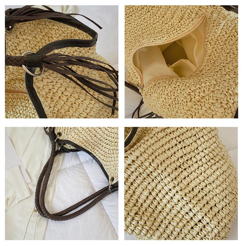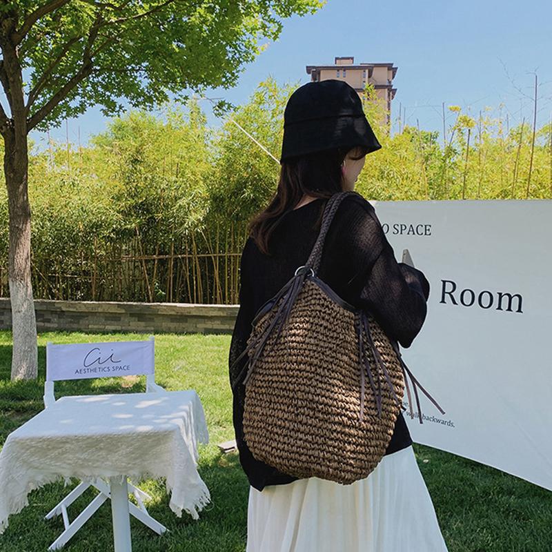 Летняя плетеная сумка из ротанга и соломы для женщин, ручная работа, плетеная сумка через плечо, большая вместимость, пляжная сумка, сумка-тоут для путешествий и отпуска KTY