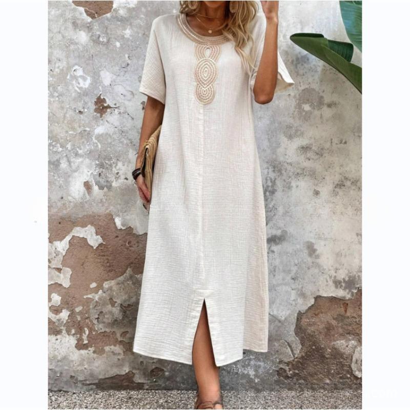 Новое женское летнее платье свободного кроя с круглым вырезом и короткими рукавами из кружева — купить товар онлайн с бесплатной доставкой по всему миру!