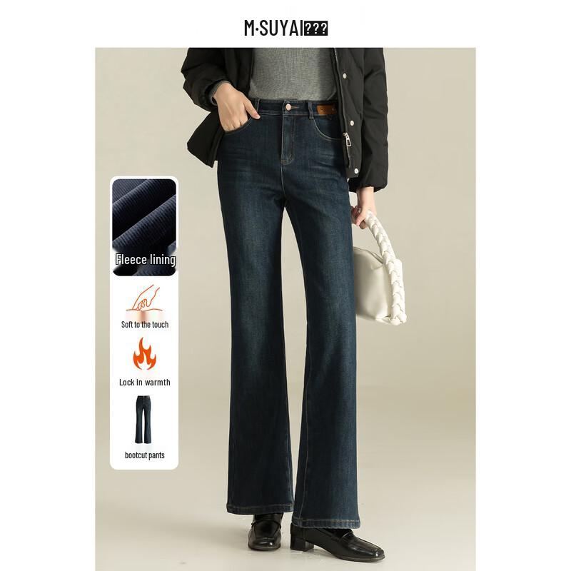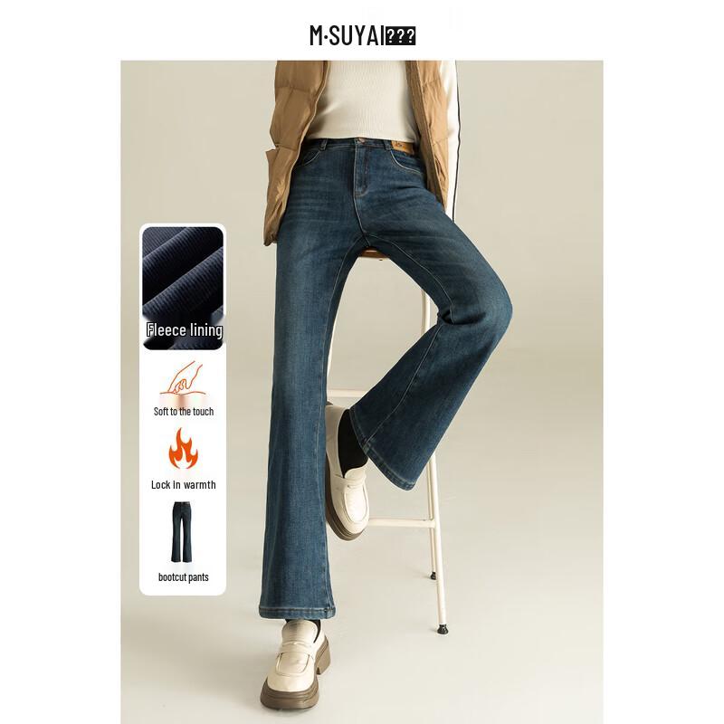 MENGSHUYA Women's High-Waist Fleece-Lined Flared Jeans