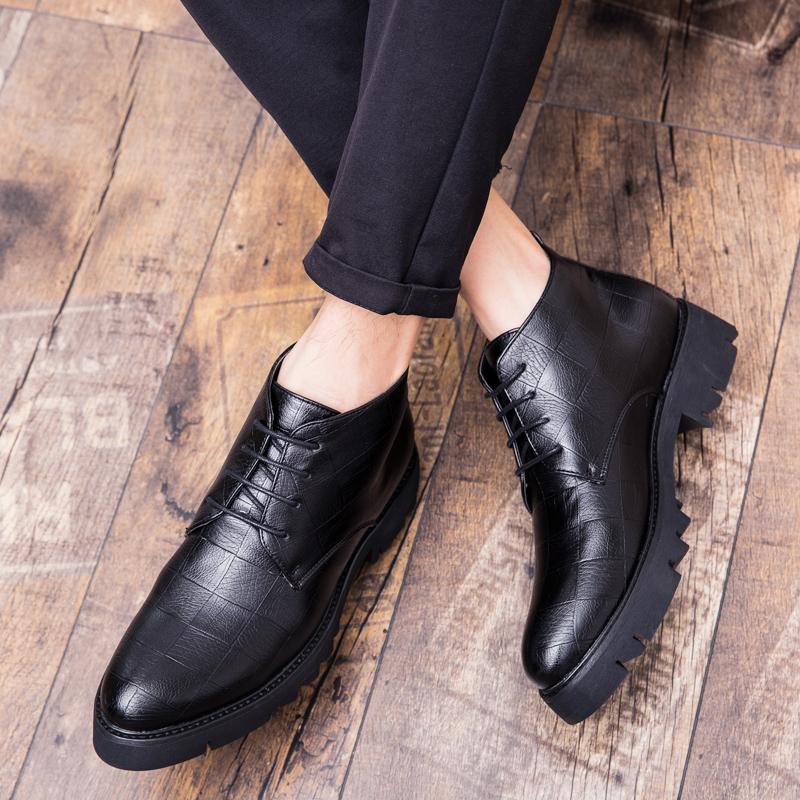 Мужские кожаные ботильоны на шнуровке с высоким голенищем, деловые ботинки высокого качества, нескользящие, мужские повседневные ботинки, деловые оксфорды, формальные