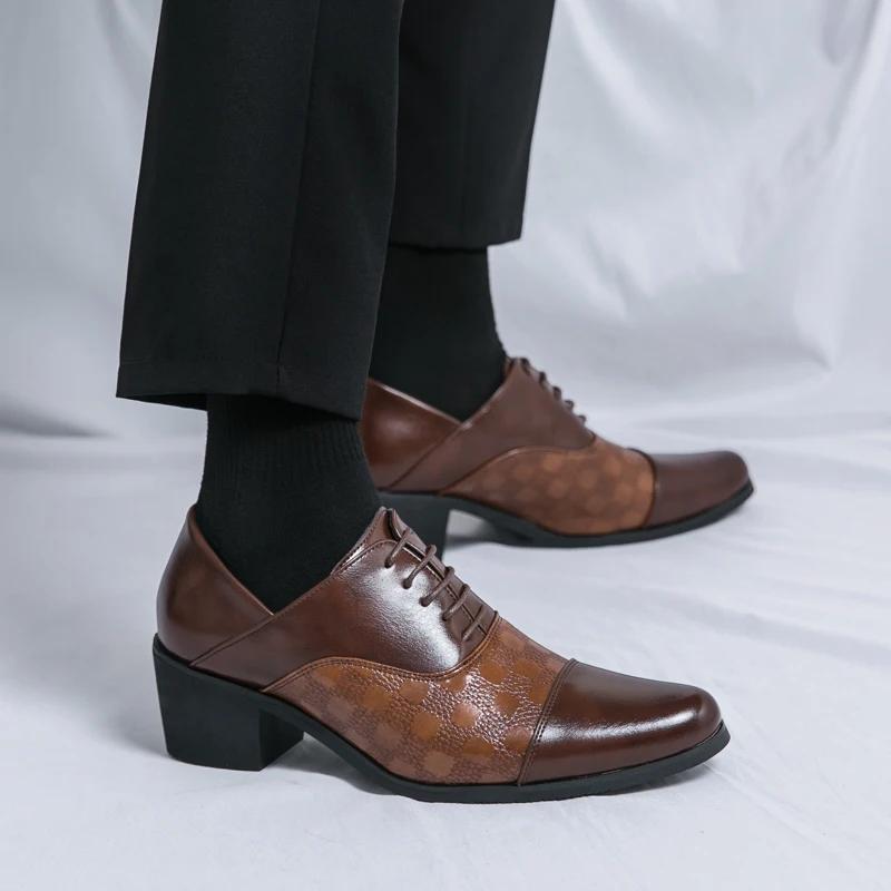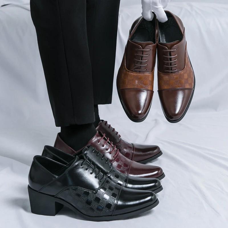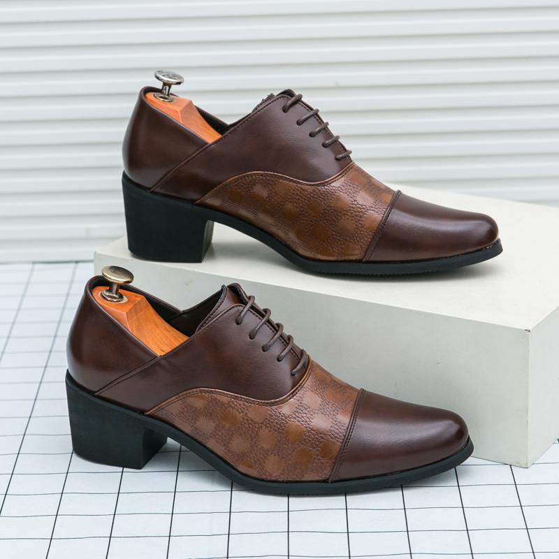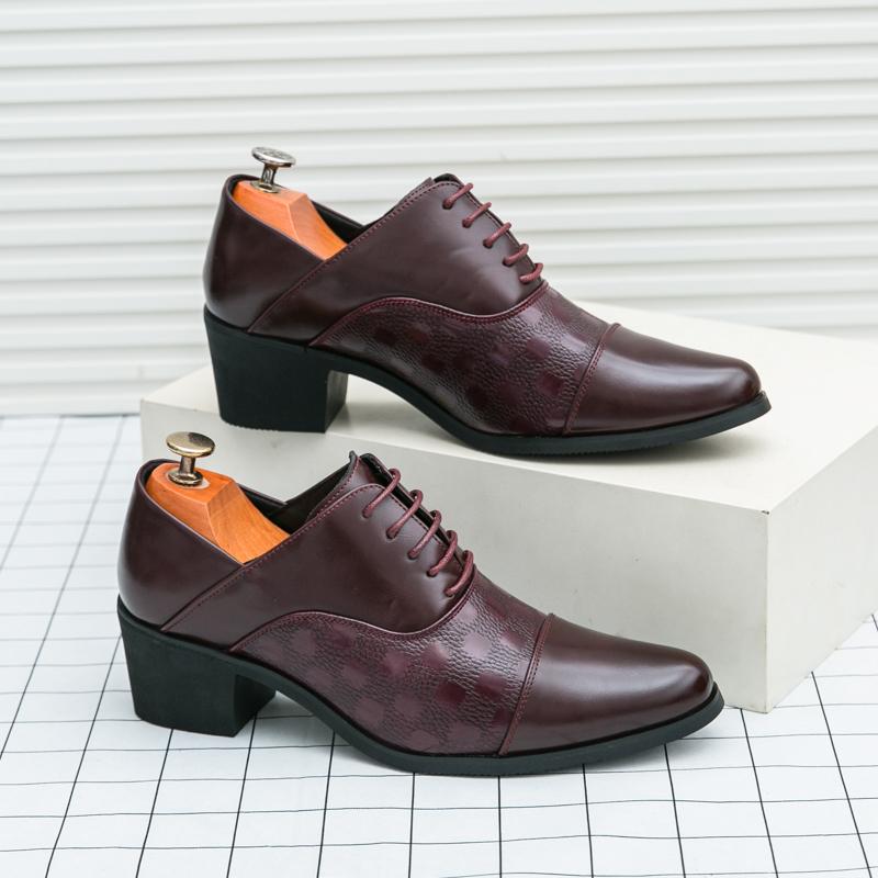 Мужская повседневная кожаная обувь Кожаная обувь на высоком каблуке 5 см на толстом каблуке Классическая обувь-пуанты Деловая обувь для платья Свадебная обувь для мужчин