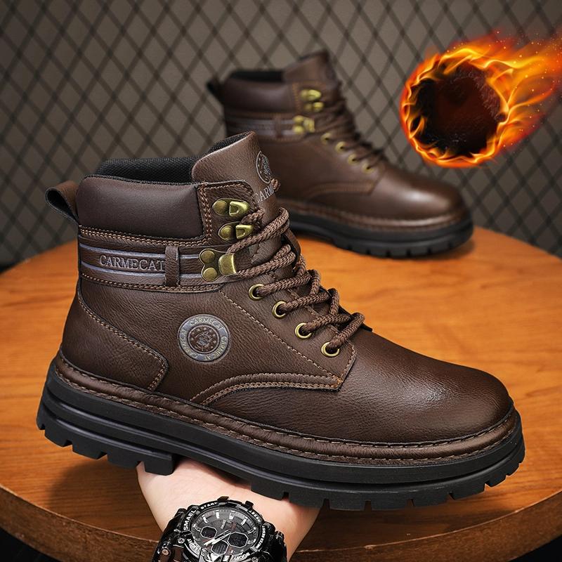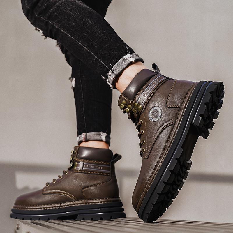 2025 Новые мужские ботинки с высоким верхом на толстой подошве, противоскользящая рабочая обувь, модные многофункциональные уличные винтажные мужские ботильоны на платформе