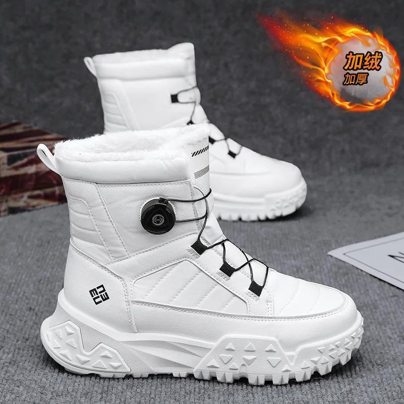 Новые Изысканные Мужские Ботинки Зимние Толстая Подошва Высокий Верх Морозостойкие Снежные Ботинки с Толстым Вельветом и Теплые Хлопковые Ботинки