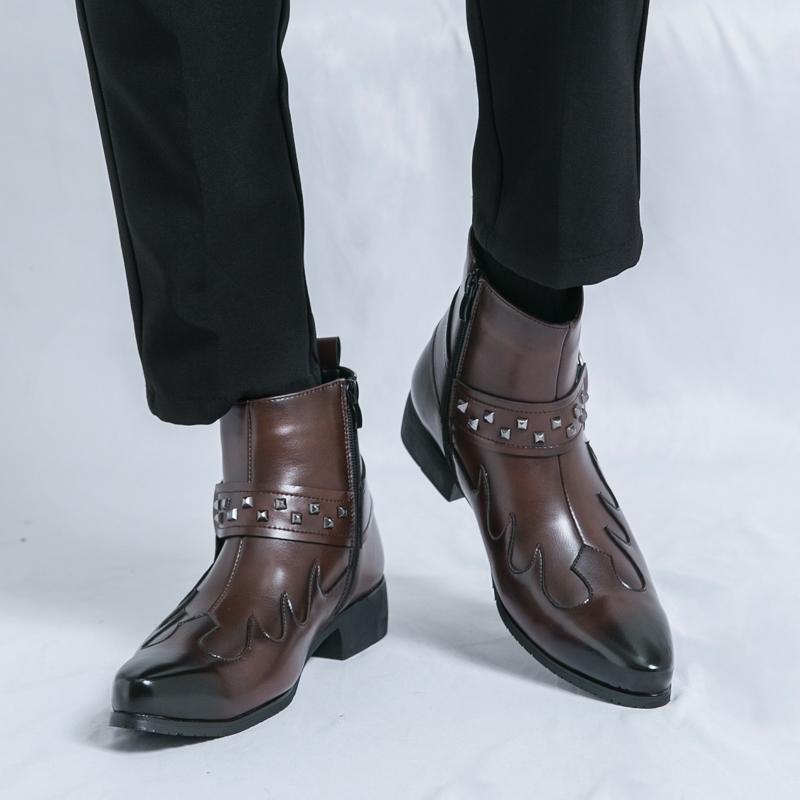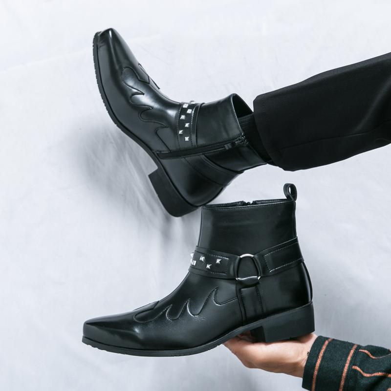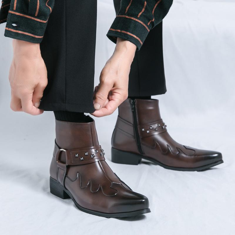 Рыцарские ботинки Мужские Черные Коричневые Боковая молния Кожаная обувь Для улицы Тренировочные Брендовые Ботинки Челси Размер 38-46 Мужские ботинки