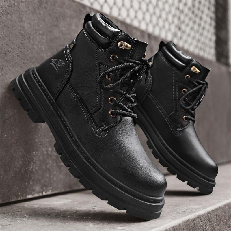 Новые мужские ботильоны из натуральной кожи, осенне-зимние мотоботы, классическая деловая мужская обувь с высоким верхом, для прогулок на открытом воздухе, боты
